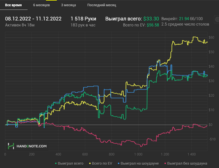 Время шло. До меня начало доходить что играть кеш игры как учит Харрингтон в книге о турнирном холдеме это не лучшая затея, начал подозревать что циферка около ника на гг находится там не просто так, что график зелёной на покеркрафте, мягко говоря, лукавит.