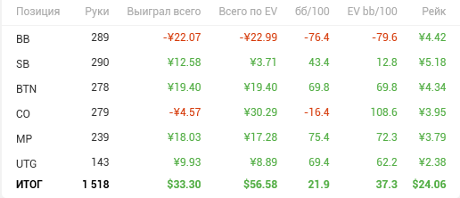 Играл я не много, цель была и есть "понять и пройти покер". Иллюзий заработать нет. Я вообще не люблю работать. Если даже представить, что зарабатываю покером, боюсь, процесс перестанет приносить удовольствие. Сидеть под плеткой и немым укором желания у меня нет.