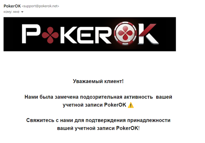 Нами была замечена подозрительная активность вашей учетной записи PokerOK
