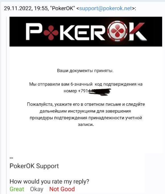 На днях супруге пришло письмо от официального саппорта ПокерОКsupport@pokerok.com следующего содержания: