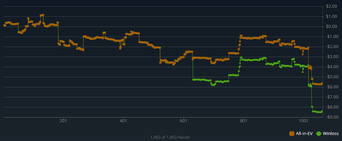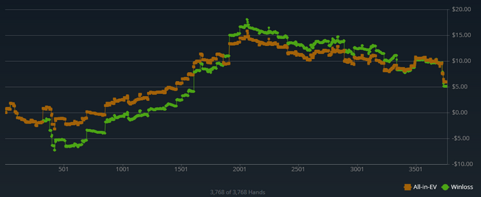 За пару дней наиграл 3400 рук, пока очень сложно дается... Результат в спойлере. Ощутил силу рейка... больно.