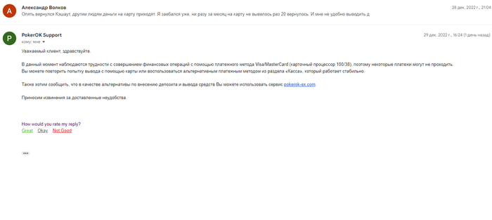 И не из за этого ли обменника у нас проблемы с выводами и депозитами через карту. В других сервисах депы и кэшауты за 10 минут проходят.