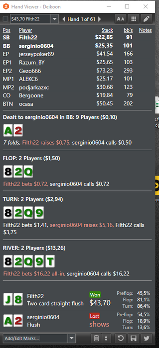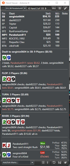 Что могу рассказать , переезжали по жести в 1 аут ( сет вс сет до каре , фул в стрит-флеш , нац фул падал на ривере 1 аут на каре, нац.флеш до стрит-флеша ) херову кучу раз , вроде смирился и пришло понимание , что дистанция всё вернёт .