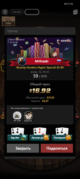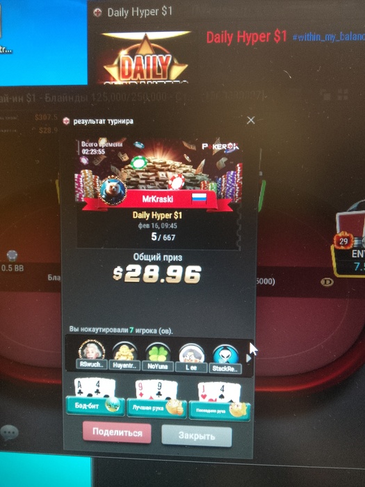NesCoffee, да и совмещать, я вот счас доигрываю загрузку на работе, ес-но 1 из турниров из-за ситуатов с хорошим стеком превратился в такой итог: