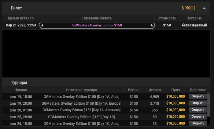Продам билет на покерке GGMasters Overlay Edition Day ($150) за 100$