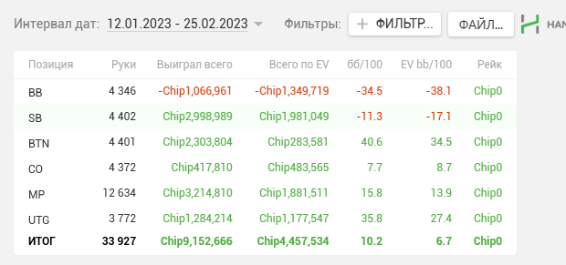 ➡️ Выгрузку с ГГ не делал, занимает много времени с конвертацией. Есть над чем работать, в основном понятное дело все вопросы упираются в префлоп. Работаем дальше 💪