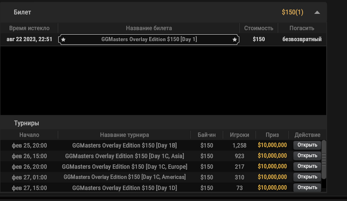 Приветствую, продам билет 150$ на GG Masters Overlay Edition цена 100$