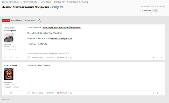 Если я создал арбитраж тему, значит у меня есть основания и докозательства. И создал я ее не для себя - он сюда даже не заглянет. Создана тема для тех, кто имел, или будет иметь с ним дела.
