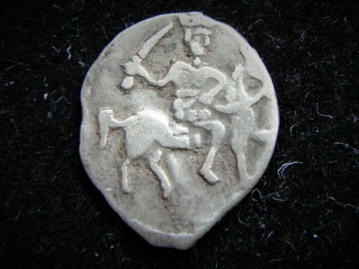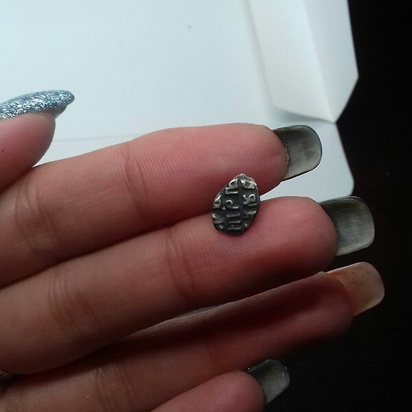 На фотографии так называемая деньга из серебра времен Ивана Грозного.