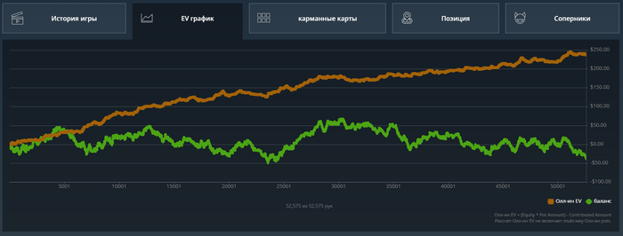 Это по факту минусовой график. Чтоб играть в около нуля, прибыль должна быть вдвое больше на столько рук.