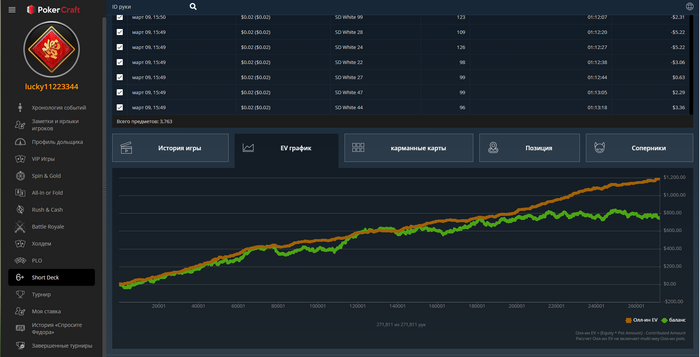 Начался март и меня вынесли в перед ногами из за столов, за неделю от играл 34к рук с Showdown %: 10.36%.