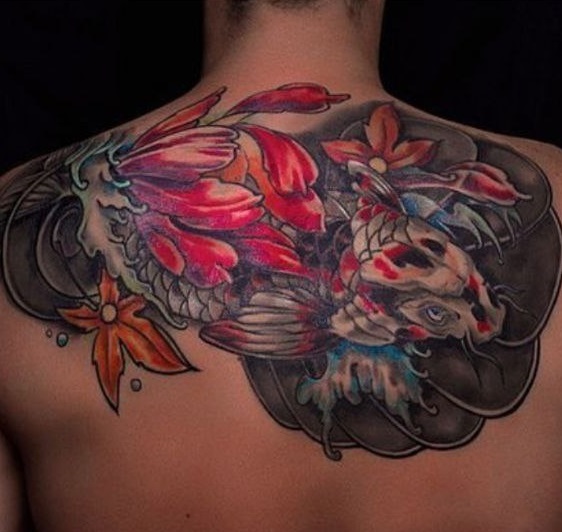 Пол шестого утра по МСК. Самое время рассказать про свои тату, и как я вообще попал в тату-тусовку. Я всю школу и универ был прилежным учеником. Не пил, не курил. В семье был плохой пример. Меня все шпуняли все учебные года,так как был додиком. Весил всего 50 кг при росте 180 см. Военкомат решил меня вылечить и забрать в армию. 2 года на гормонах. Прогресса не было. Выдали военник. А мне оставалось пролечиться пол года. через пол года я весил 120 кг.))120 кг чистой сексуальной массы. (точнее был я на любителя). И я решил,раз я уже здоровый боров. Надо украсить свою тушку тату. Долго мечтал о ней. И вот решился. Нашел мастера,как оказалось не очень хорошего. Выбор эскиза пал на птицу Феникс. Огонь,пламя, острые когти. ну пушка просто. Но мастер набил тупо красную курицу(к сожалению или к счастью фото этого ужаса не сохранилось) Проходил я года 3 с этой фигней на спине. За 3 года тату выгорела,расплылась. И я такой "надо это ху..ню чем-то забить"Нашел хорошего мастера. И через 3 месяца у меня появился карп-кои на спине.
