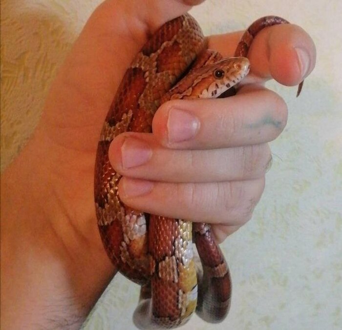 Пока в покере происходит лёгкое изнасилование меня от аппонентов за столома. И чтобы как-то остыть от горящего пукана. Расскажу про своих питомцев. На дворе был 2017 год. Мне было ровно 30 лет. И все мои родственники и знакомые просто меня заебали с вопросом,А когда ты женишься,заведешь семью,детей и так далее. И тут я читаю где-то фразу,что у каждого мужика к 30-ти годам должна быть змея(жена) на шее. А я жену заводить не хотел. И купил себе живую змею Мексиканского маисового полоза(короче цветной ужик простыми словами). Так в моей жизни появился мой первый домашний питомец. Змей по имени Зефир.