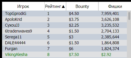 Получил за 8 место 2,92 бакса. За первое давали 29 долларов.