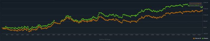 Итак, я тут посчитал, что если отыграть 200к раздач на нл10 с винрейтом +2бб/100, отыграть несколько гонок, то можно заработать 1к зелени за месяц!