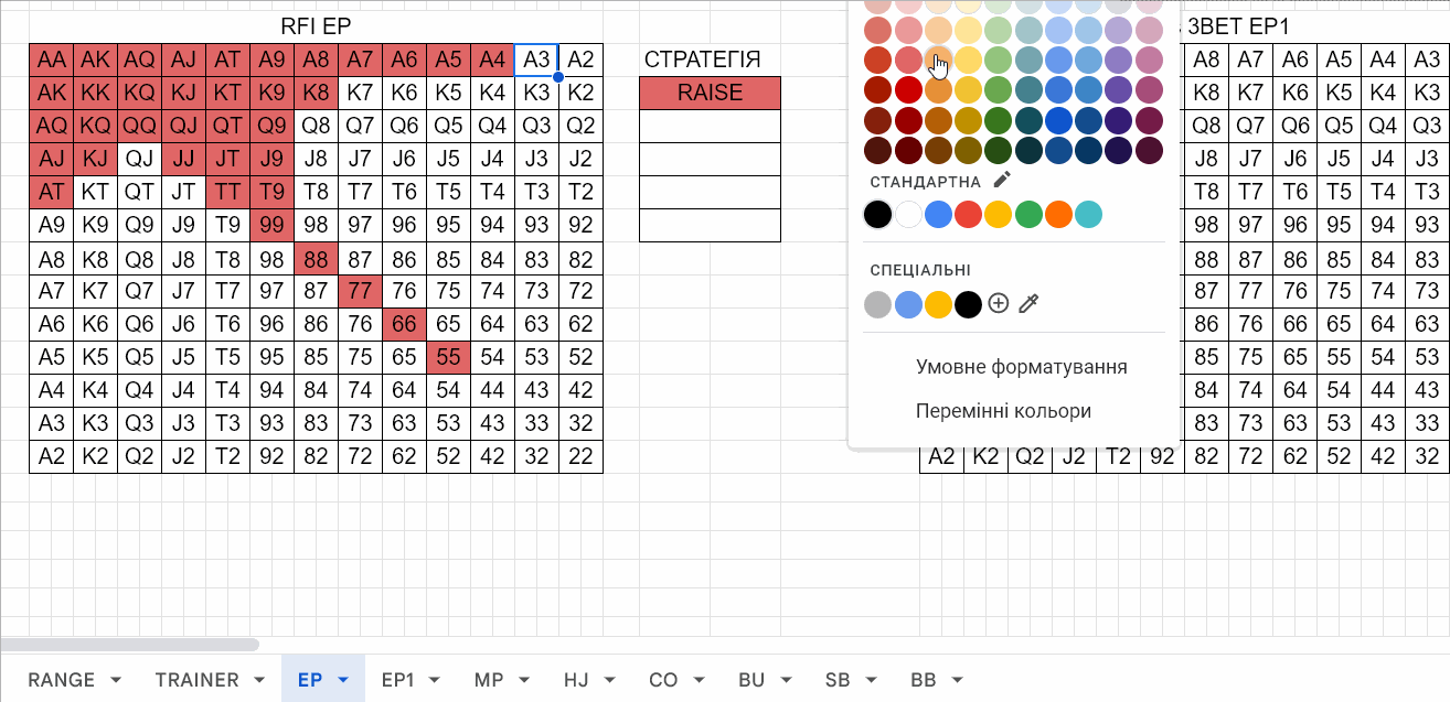 4. Самостійно заповніть діапазони EP, EP1, MP, .... BB