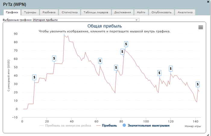 Под катом мои графики в сети WPN на шарке. PrTz на ACR, ну и PrTz0903 - соот-но на Кинге. Плюс скрин из Х2Н о кеш игре на АКРе. Плюс скрин о кеш игре на Кинге за все время, какой черт меня занес в НЛ10, да еще и в зум, я хз, думаю, что прибухнувший туда залетел, но это точно не в посл. год было)