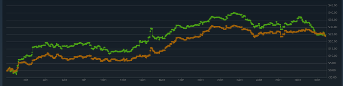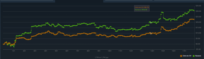 Так хорошо вчера начал и так фигово закончил. Обидно. Пытался открыть больше столов во -время сессии и понял что теряю концентрацию. Не успеваю посчитать все диапазоны на всех столах. В итоге тьма ошибок. Да еще клиент крашился пару раз. Это вообще за гранью