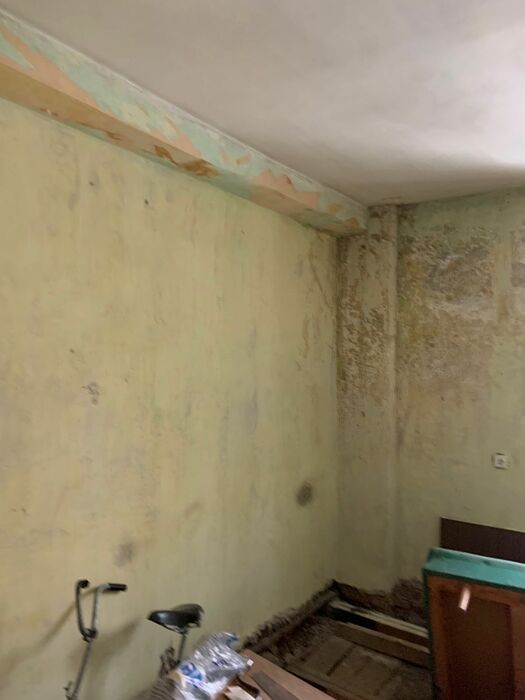 Дальше. Дом кирпич, перекрытия дерево. Полы не залить. В одной из комнат видны потеки на потолке - да это небольшая проблема с кровлей, в принципе решаемая.