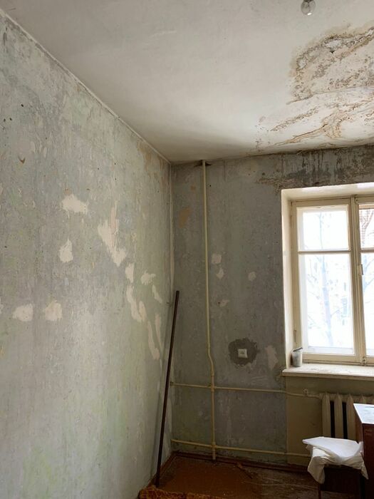Не знаю почему, но видя такие потолки, глубокие оконные проёмы, много углов, наружние советские батареи, мозг сразу рисует что-то такое: