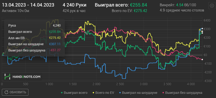 Вывод снова 1 и тот же: видишь херню - не выдумывай дебилам сложные линии, играй проще. И не муди блть. Снова за 4к рук минимум 150бб отдано добровольно. Тут стек, там полстека, а потом винрейт 2бб
