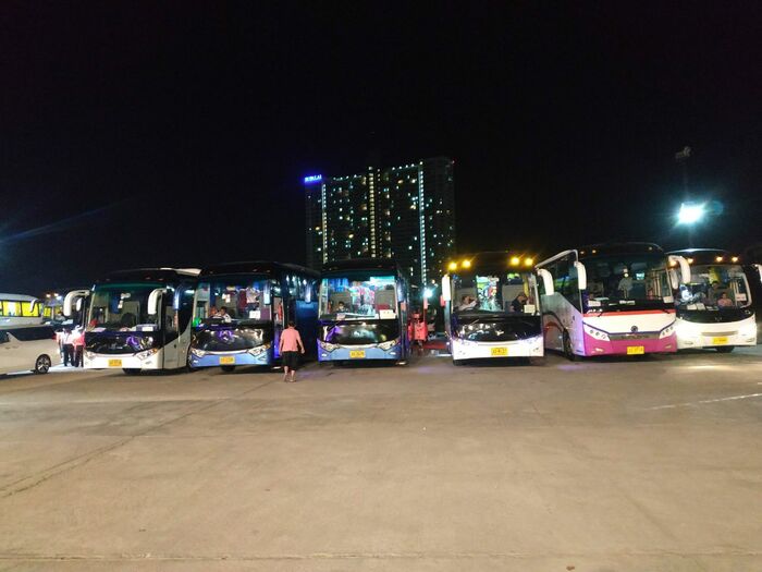 На парковке перед входом 16 больших автобусов, из которых выгрузили зрителей-азиатов.