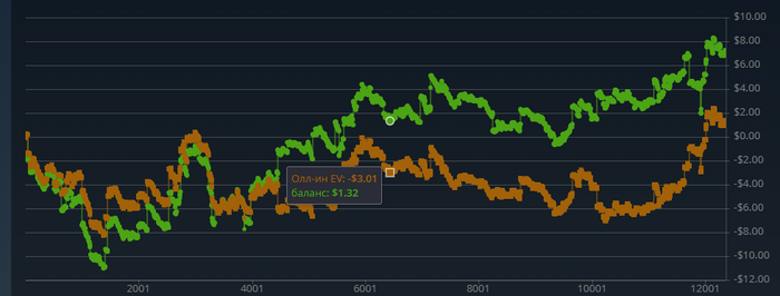 Сегодня было весело, но утешет то что могло быть и хуже) Где то брал страховку, где то нет, по этому такие расхождения с графиком.