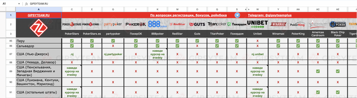 Подробно об игре из США и доступных покер-румах указано в нашей таблице по ссылке (на данный момент строки 87 - 91):