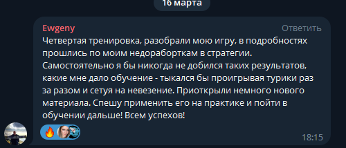 Прежде всего, я хотел бы отметить навыки тренера в объяснении префлоп-стратегий. Я оценил его способность разбирать различные ситуации и предоставлять ясные и логичные объяснения.