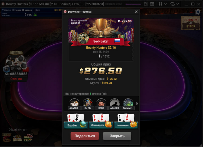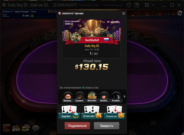 4. Разбор конкретного турнира - 25$ (в час). Вместе разберем лог твоего турнира, турнир желательно с хорошим проходом, чтобы разобрать все стадии, включая ICM.