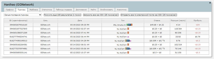 Скрины из шарка, обратите внимание на последний сыгранный турни у четверых.