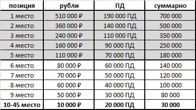 - все 45 участников попадают в зону ITM, но основные призы будут разыграны на финальном столе.
