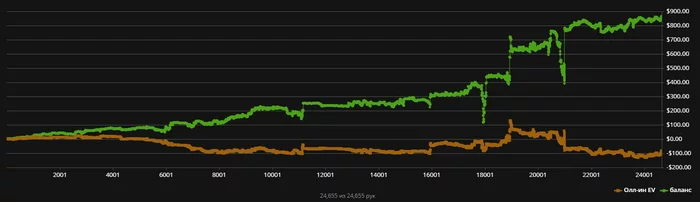 Играл мало, так как уезжал в Питер с семьей. Игра в 0, EV в минус, но, за счет лотереи Thanks GG , банкролл подрос до 310. Ну ничего, двигаемся дальше...