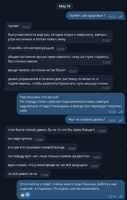 Далее я решаю проблемы со спиной каждый день, походы к врачу, физиопроцедуры, растяжка/зарядка. Периодически играю, когда спина не сильно болела, пришлось спину ровно держать всю сессию (по рекомендации врача) и это было очень тяжело. Так сложилось, что появились ещё другие обязательства не покерные, которым мне тоже нужно уделить время (если вкратце, то семейные).