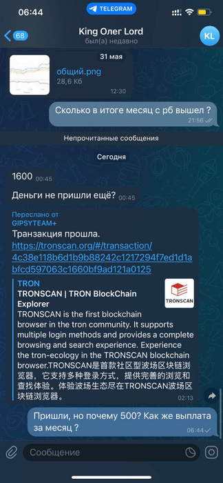 Выплаты я произвёл в размере $500 криптой на кошелек Ивана и считаю, что свои обязательства выполнил по ним.