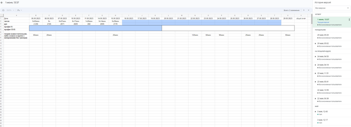 как выглядит таблица после удаление Олегом(редакция от 1 июня), справа видна хронология, удалил всё после 15 числа, то есть когда писал о проблемах со спины