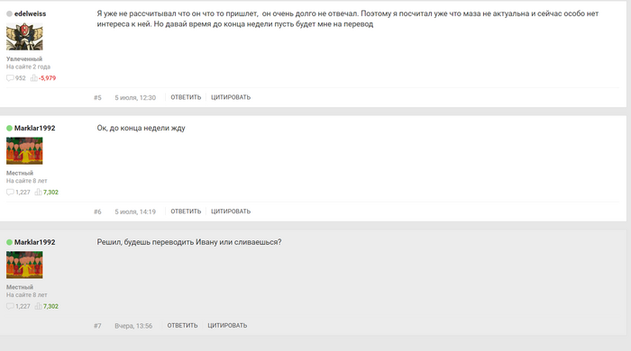 edelweiss, Ивану отписал в личку и ссылку скинул на эту тему, ждем когда реквизиты скинет и отправляем. Я в течение суток отправлю, так что тоже можешь не затягивать