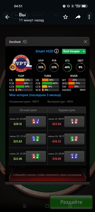 Извините, если беспокою. Не хочу причинять неудобств. Но могли бы вы мою стату оценить покерную? И дайте пару советов по слабостям. Заранее буду благодарен🙏