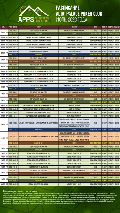 В течение июля по будним дням в клубе Алтай Пэлас запланирован целый каскад сателлитов в серию APPS