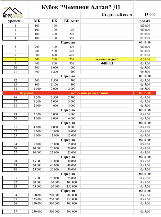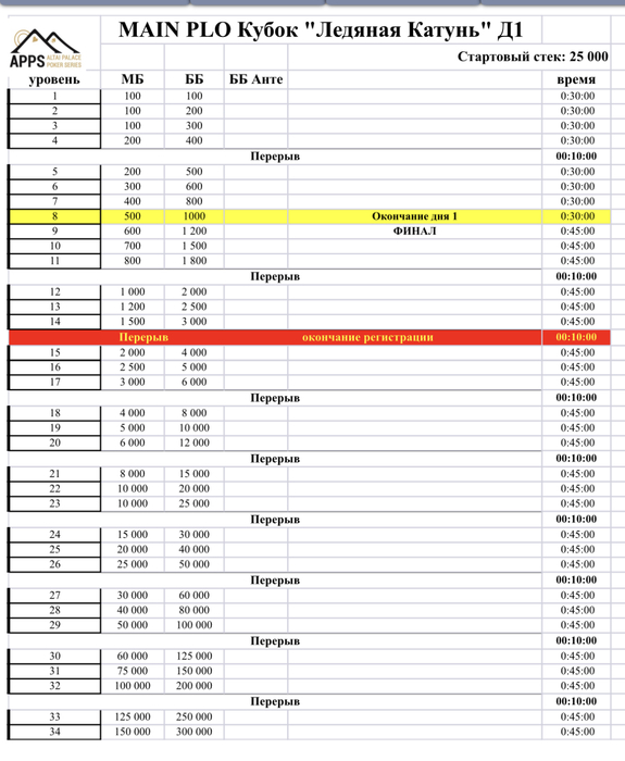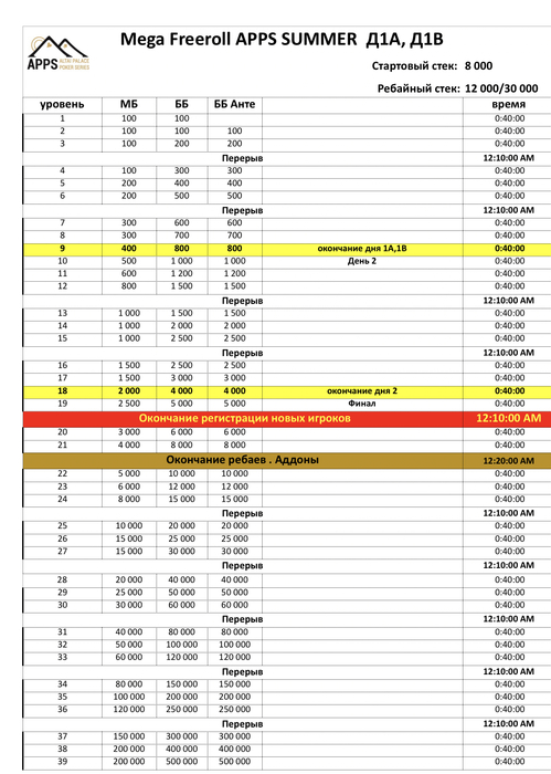 В Д1А и Д1В вход в турнир бесплатный, один раз. Формат турнира ребай + аддон. Усиливать стэк можно в любой момент прямо за столом у дилера. Раздачи пропускать не рекомендуется, повторного входа в турнир в стартовые дни не предусмотрено.