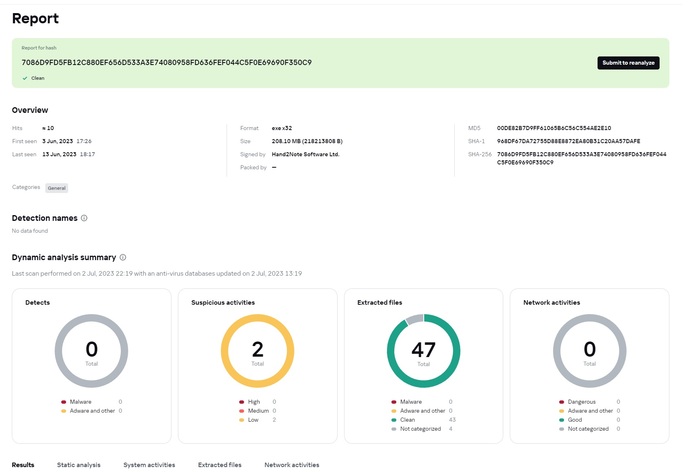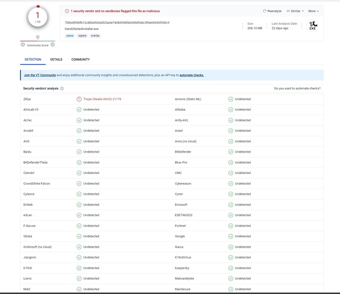 Я знаю, что бывают ложные срабатывания, но тут есть нюанс - этот троян (если это именно троян, а не ложное срабатывание) использует уязвимость нулевого дня в различных браузерах, в том числе и в Хроме, и в Эдже. "И вероятность высока, что это именно троян, если угроза связана с веб-страницей браузера". И даже если пренебречь тем, что я запустил Хром (это 2 разных по сути процесса), то как я понимаю Hand2Note4 собран на базе Эдж от микрософт, т.к. при переключении в режим откладки в самом приложении Hand2Note4 открывается DevTools от микрософт.