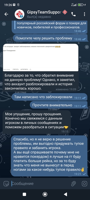 Может это и объясняется правилами рума, но мной, как человеком, который точно знает, что ничего не нарушал и не мошенничал, воспринимается только как неуважение к своим игрокам, никак более.