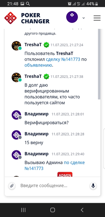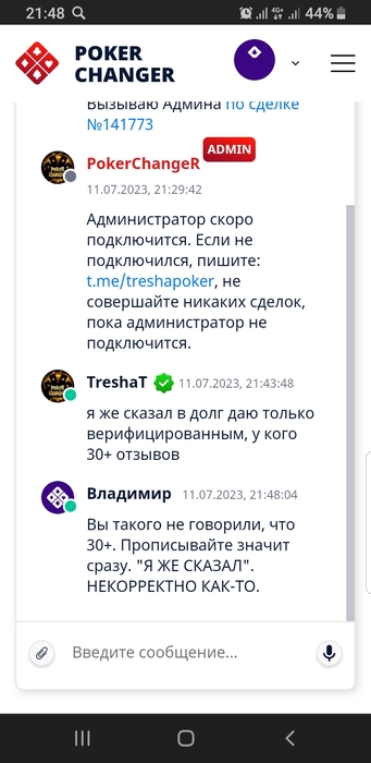 POKER CHANGER некорректное поведение админа