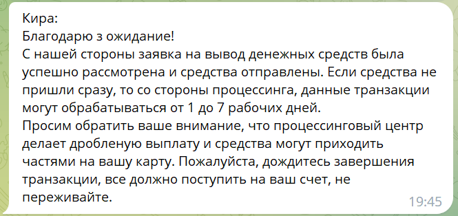 Видал я скам пары контор и там начилась всё точно так же - невыплаты, затягивание, стандартные отписки саппорта, потому что часто они реально не вкурсе, что менеджмент уже давно свинтил с деньгами.