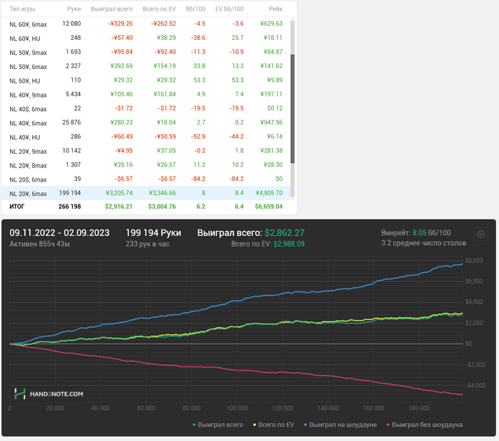 Здравствуйте. Катаю покер брос, нл20 8бб/100 200к рук. Хочу идти выше, но банкролла не хватает.