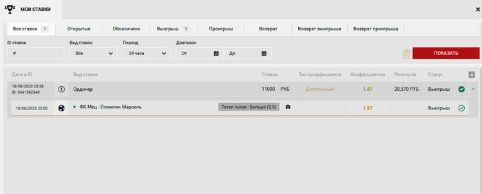 - Ставки на РПЛ полнейшая ложь, Я сделал одну ставку на чемпионат Франции! Скриншот будет ниже приложен.