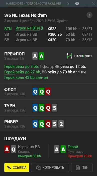 Немножечко было обидно когда у тебя карманные тузы а на флопе 0%