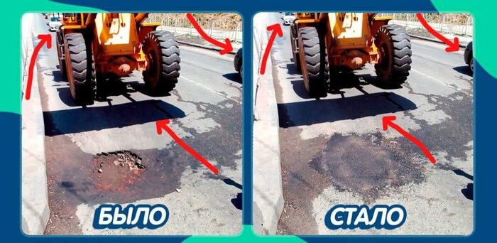 Забыли сделать фото, зачем подделывать? Ну и выложили бы только фото с отремонтированной ямой;