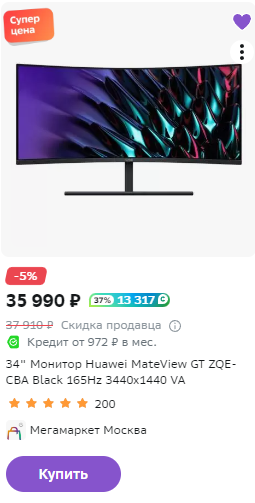 Бонусы сберспасибо, которые поднимают данный сайт над всеми остальными. К примеру вы можете заказать монитор за 35.000 рублей и получить 13.000 бонусов для следующей покупки.