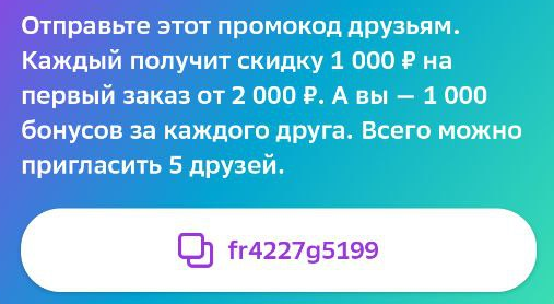 Если вы всё же решили сделать первый заказ, то лучше всего это будет сделать с этим промокодом, который как раз таки даёт скидку в 1000 на первый заказ от 2000 рублей.